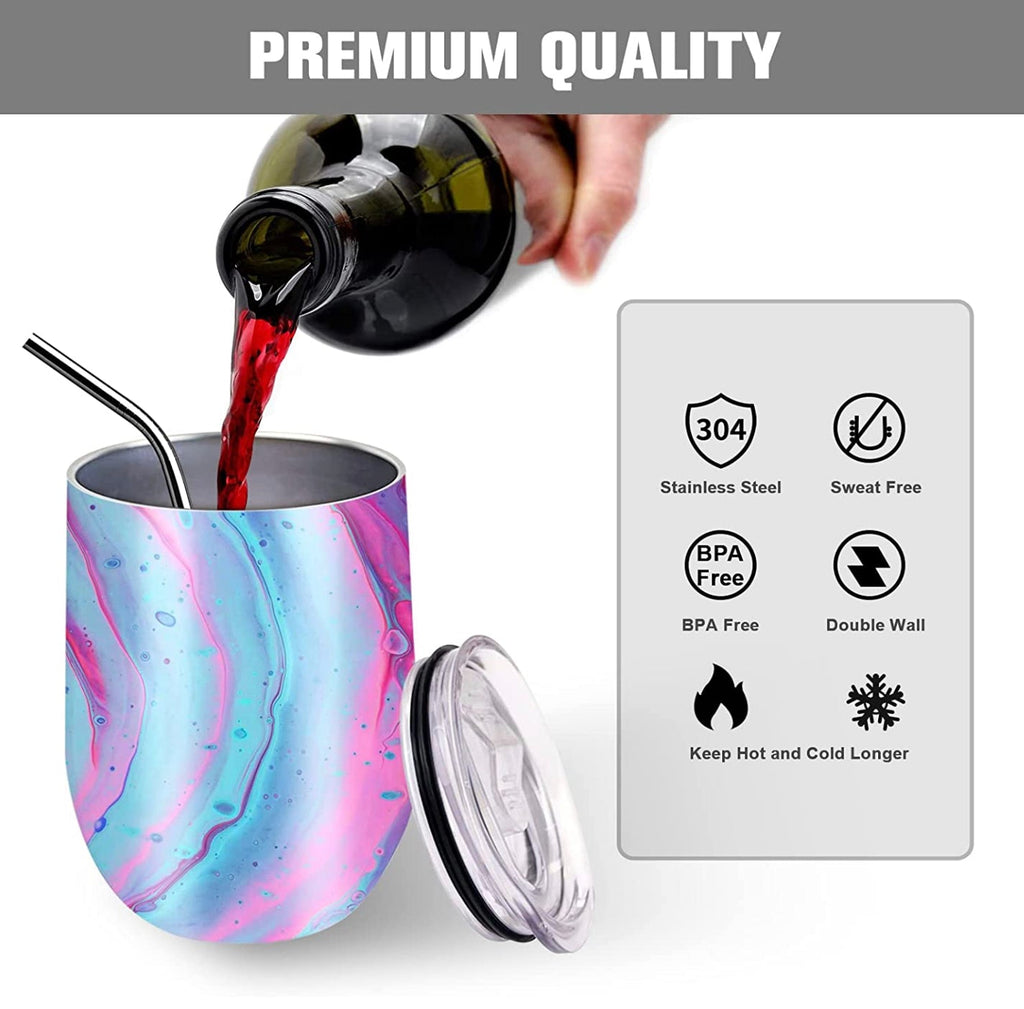 12oz double wall, insulated wine tumbler, stainless steel with lid, metal straw & brush.